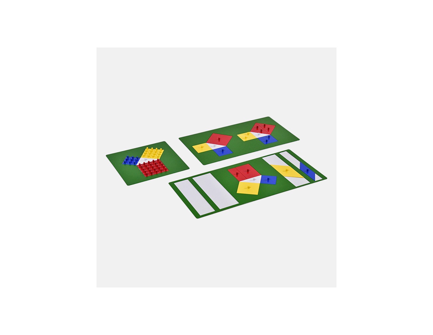 Three metal insets to demonstrate the Pythagorean Theorem in three different cases.