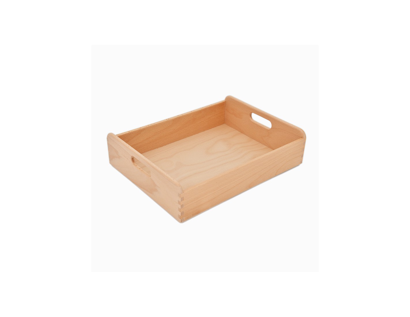 The transport and work tray is present in the environment in various sizes and variable quantities. It can become an integral part of many materials offered to the child's free choice, of any type and at any age. The transport of objects (a tray with variable content) is also a work in itself proposed in the Montessori environment, with the aim of refining the child's skills on multiple levels: concentration, attention, self-control of movements, care of the environment.