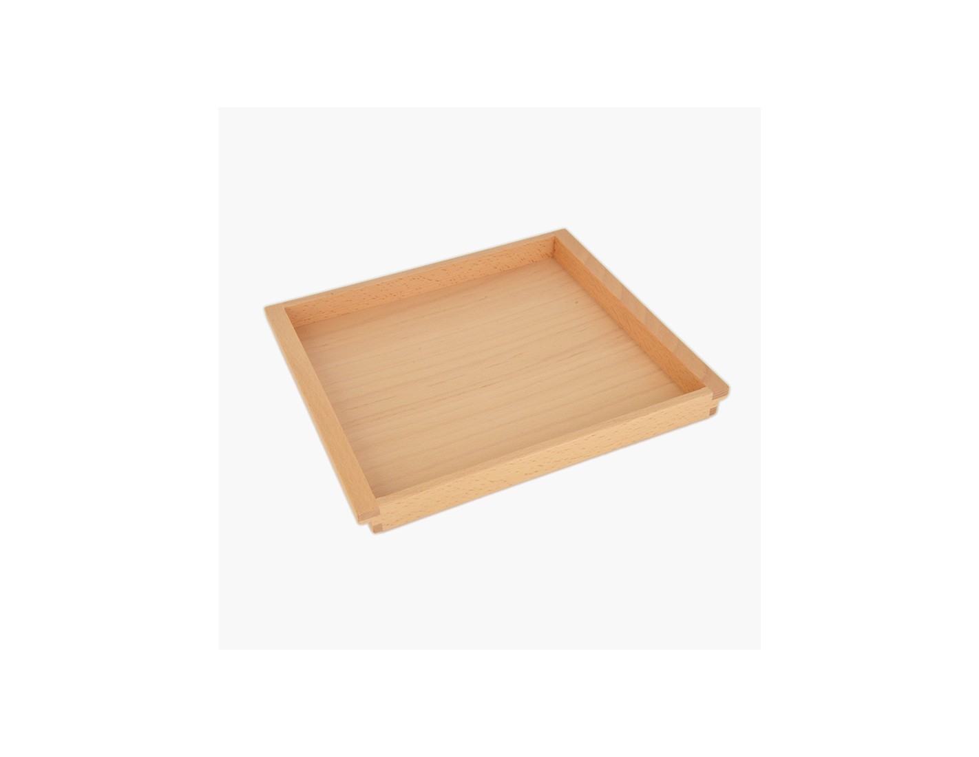 Work and transport tray, with low side, made of wood and painted in every part with non-toxic products; equipped with lateral grooves for an easier and safer grip. External dimensions: 28 x 26.5 h 2.5 cm.
