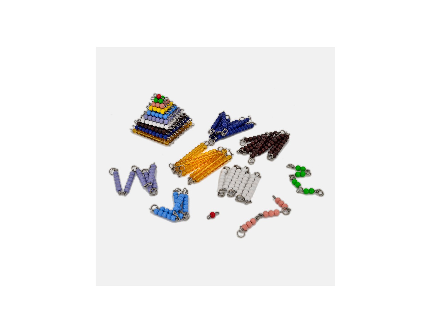 - 1 set of colored wooden bead chains from 1 to 9 in their respective colors;