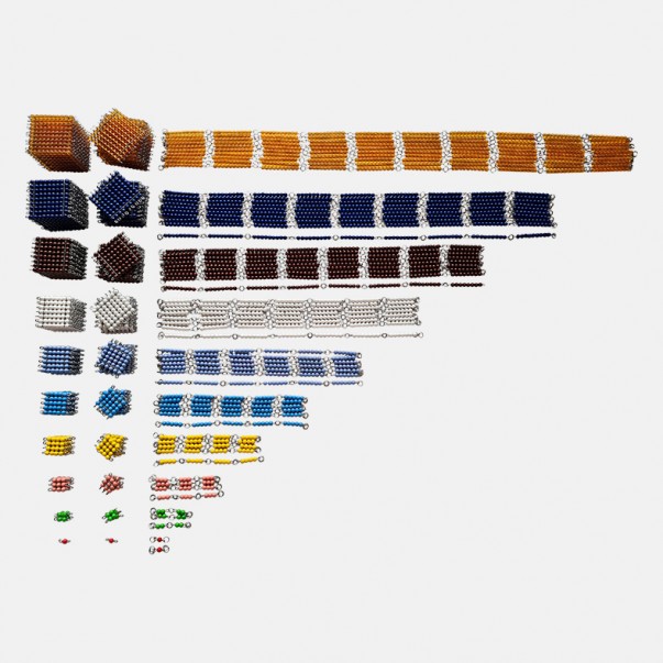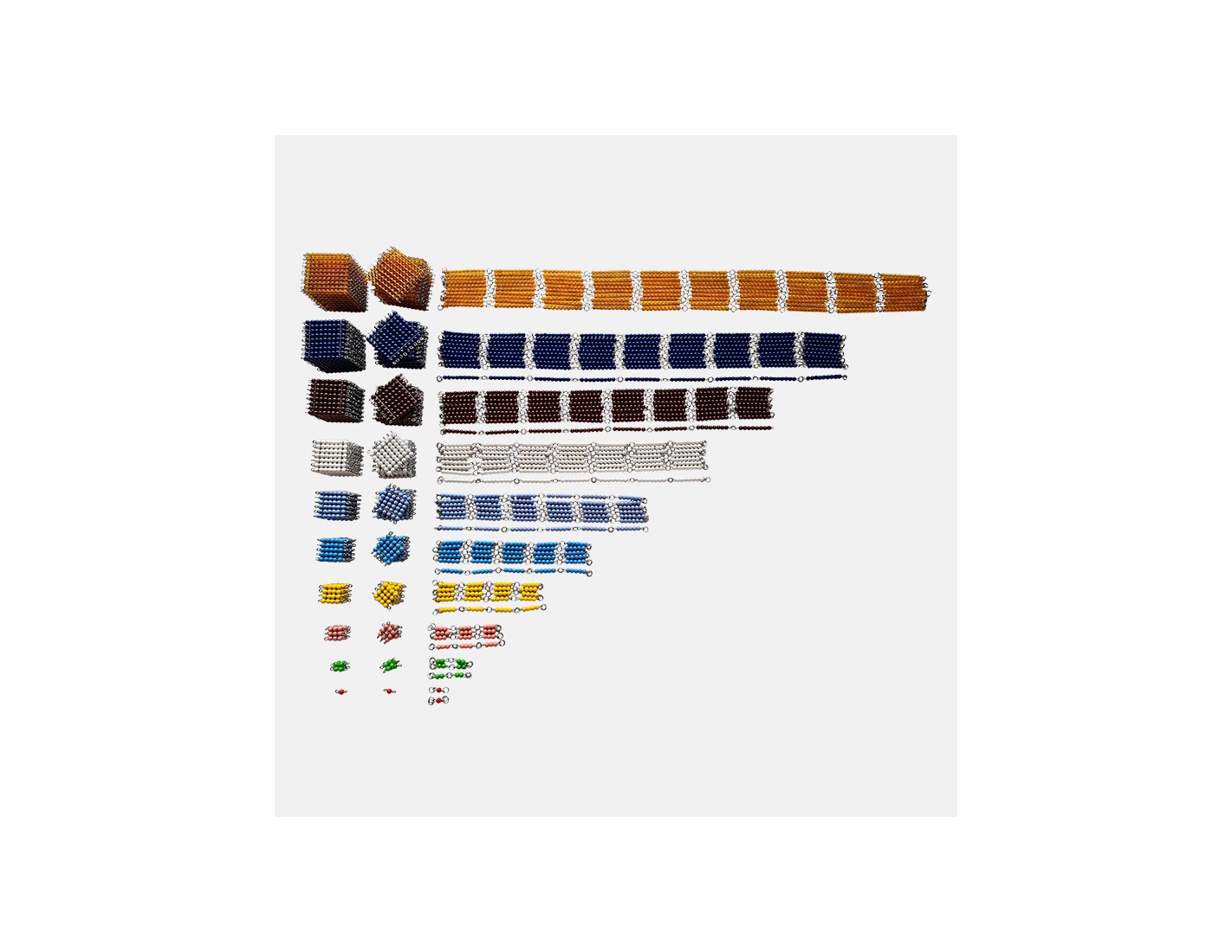 A set of short and long chains, with corresponding squares and cubes, glass 10 beads and colored wooden beads with stainless steel sticks.
