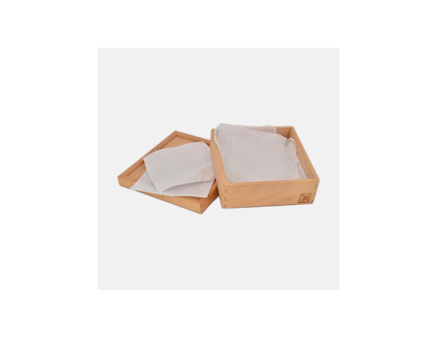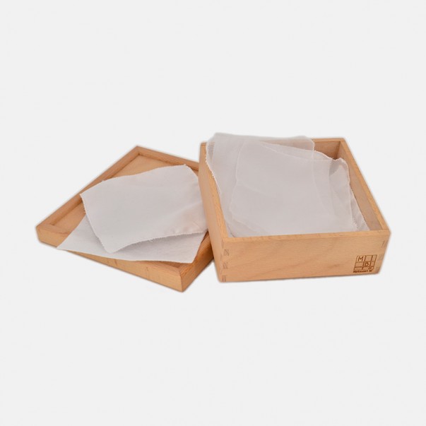 The material is made up of two boxes with lids with UNI EN 71-3 finishing, each containing 6 pairs of square pieces of textile with different colours and different textures (linnen, cotton, wool etc.)
