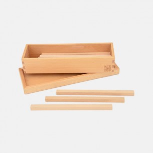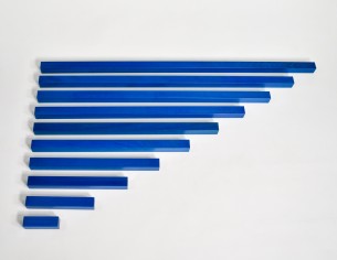 This material refines the child’s ability to visually distinguish colours and figures. Like other Montessori materials for very small children, this material helps to develop concentration, will, intelligence. The cubes and parallelepipedons in relation between each other give a practical representation of algebraic formulae (a+b), the generic binomial cube. Cubes and parallelepipedons can be freely combined and observed, also making seriations in relationship to various dimensions. This sensorial material is an important preparation for mathematics and algebra.