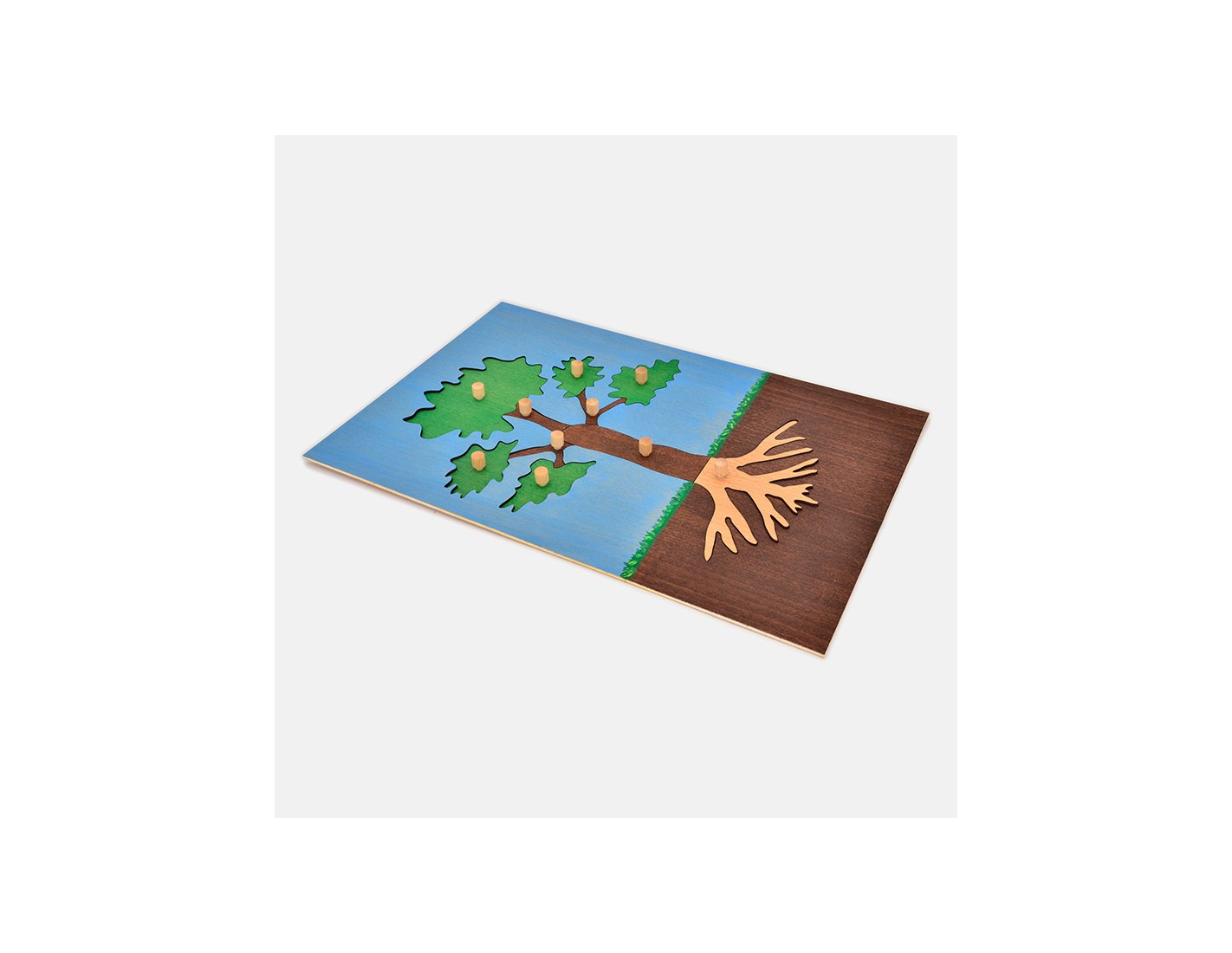 Una tavoletta realizzata in legno di faggio senza fondo con l'incastro delle parti della pianta, impregnata e verniciata con prodotti atossici e rifinita a mano. Dimensioni: 42 x 28 cm.