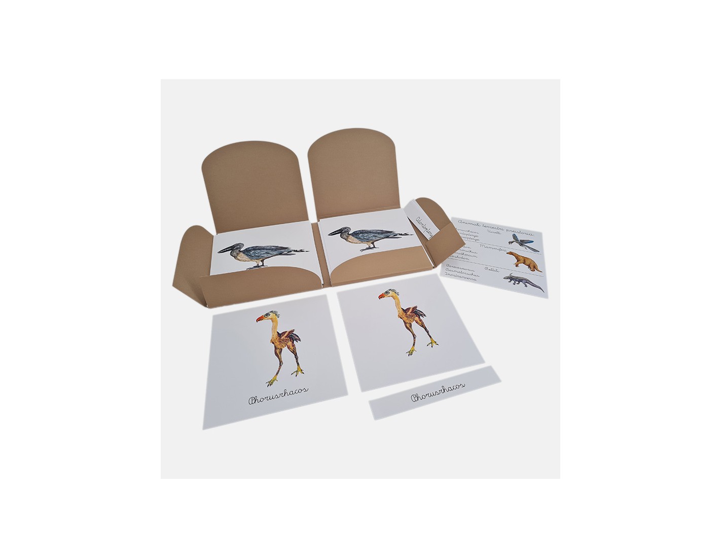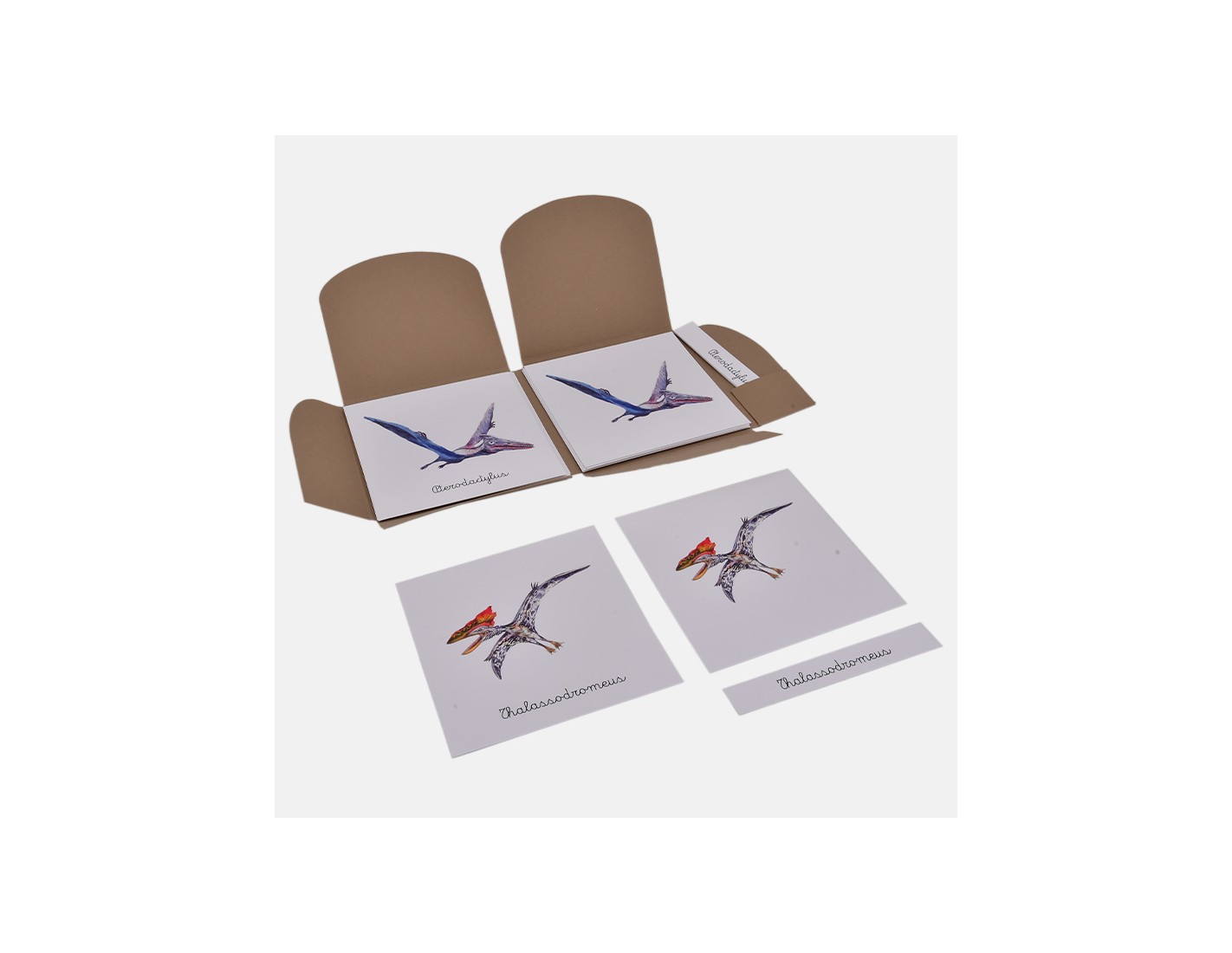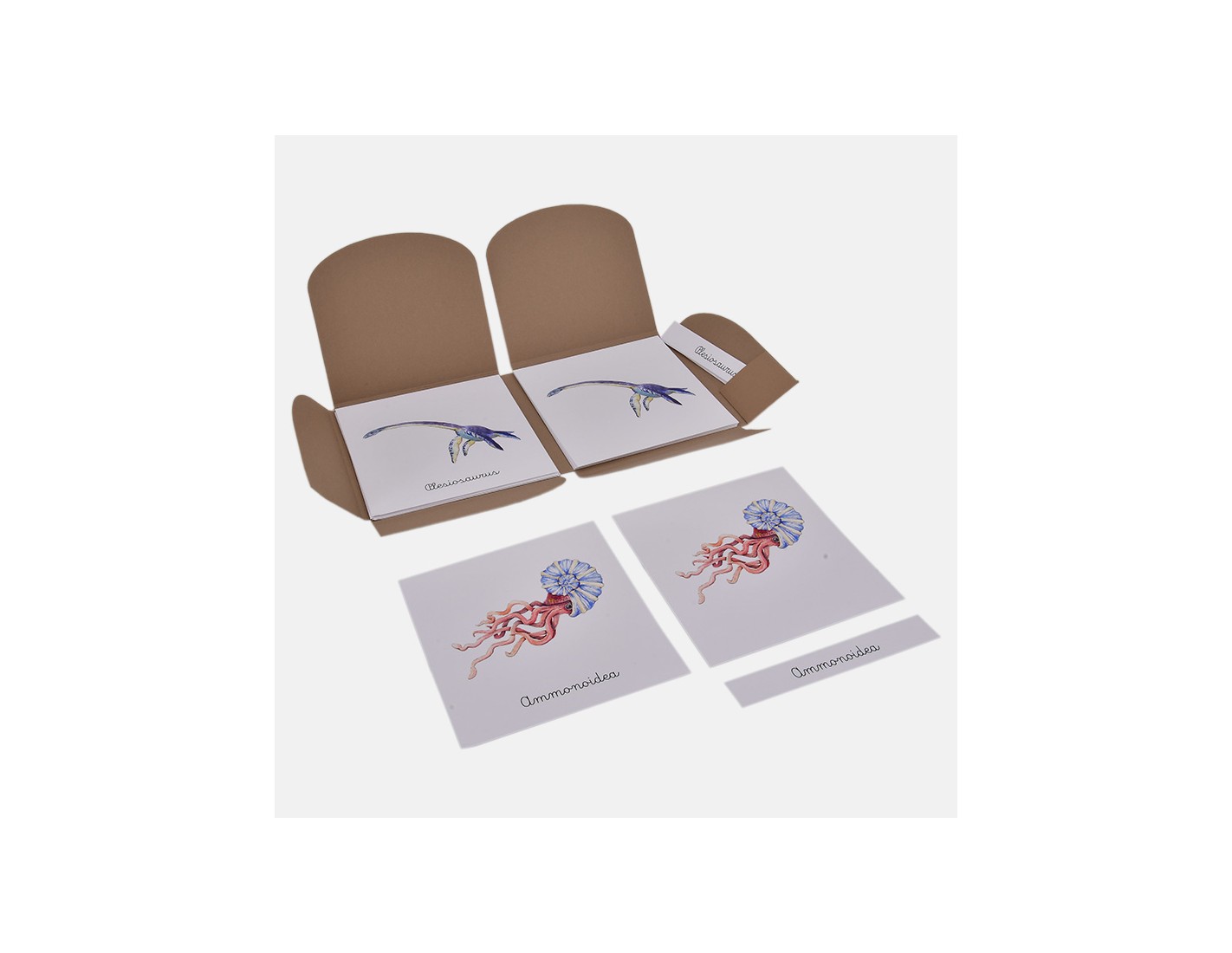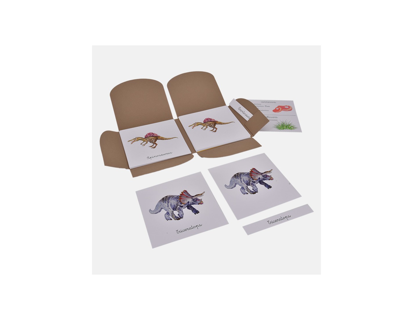 Nomenclature montessoriane dei dinosauri e animali preistorici. Illustrazioni fedeli approvate da esperti, realizzate a mano e riprodotte. Disponibile in italiano.