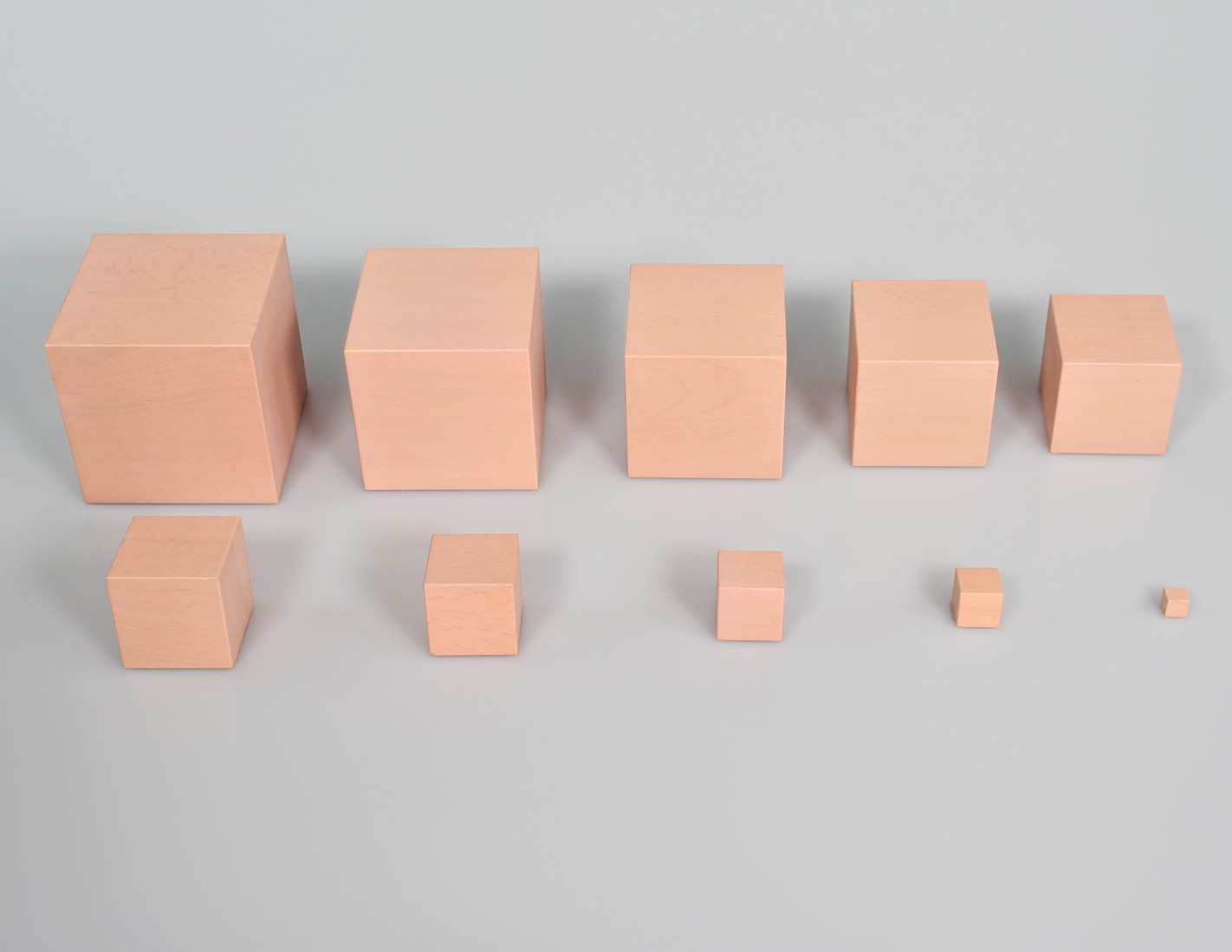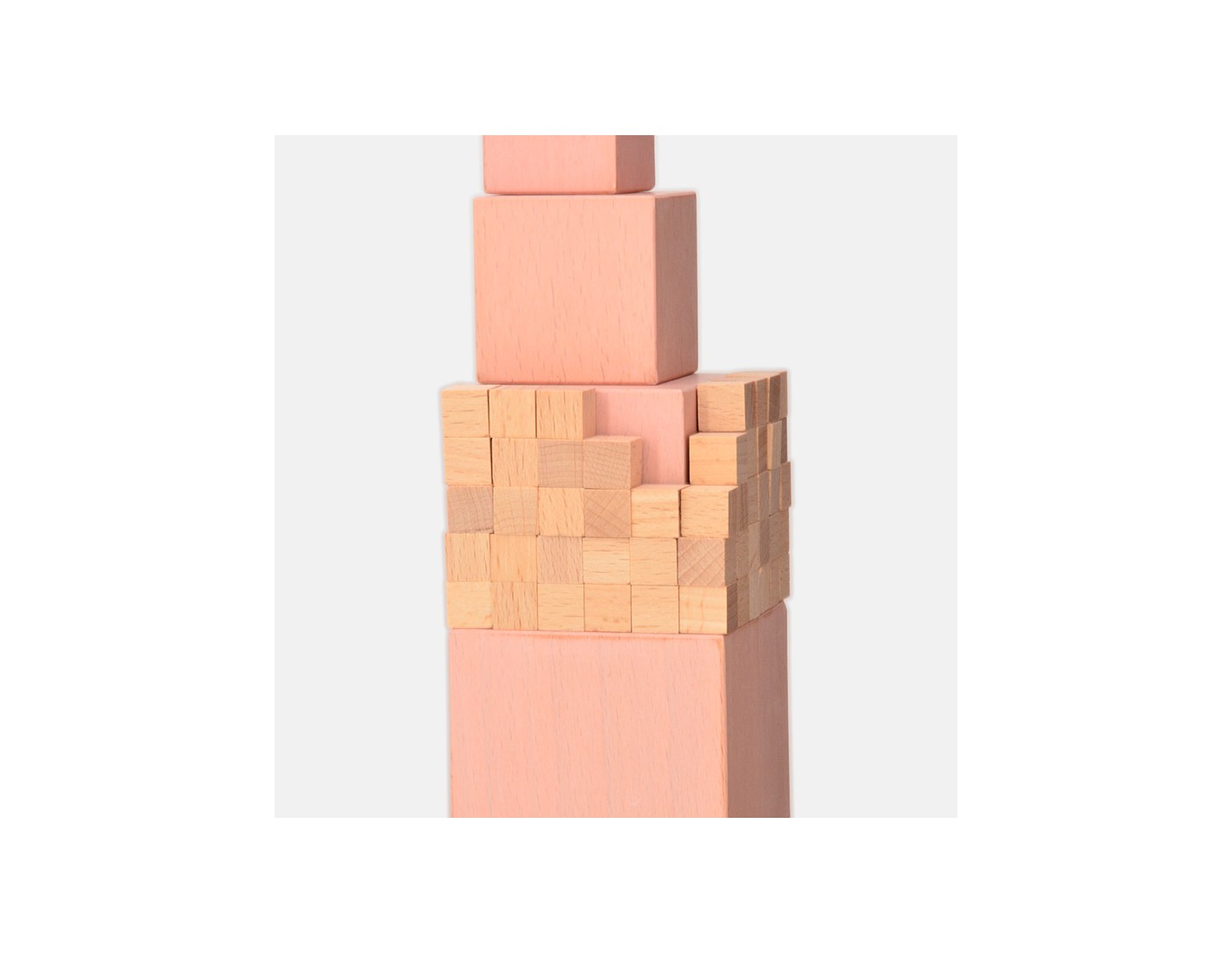 Il materiale è costituito da una serie di dieci cubi in legno massiccio, trattato con velatura in colore rosa pallido e vernice protettiva trasparente atossica; le dimensioni dei cubi aumentano da 1 cm di lato a 10 cm. Vengono forniti tre cubetti da 1 x 1 x 1 cm aggiuntivi.