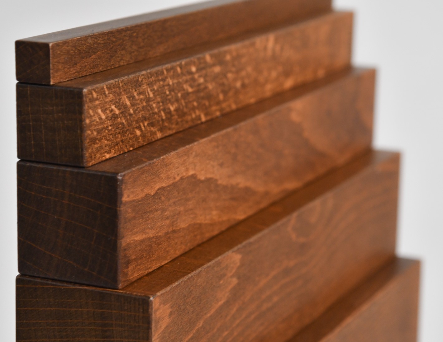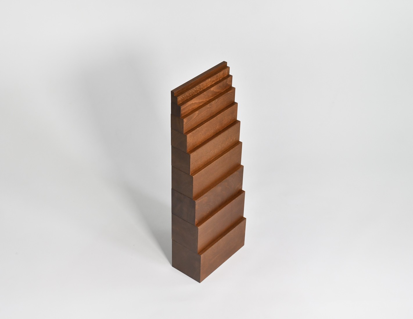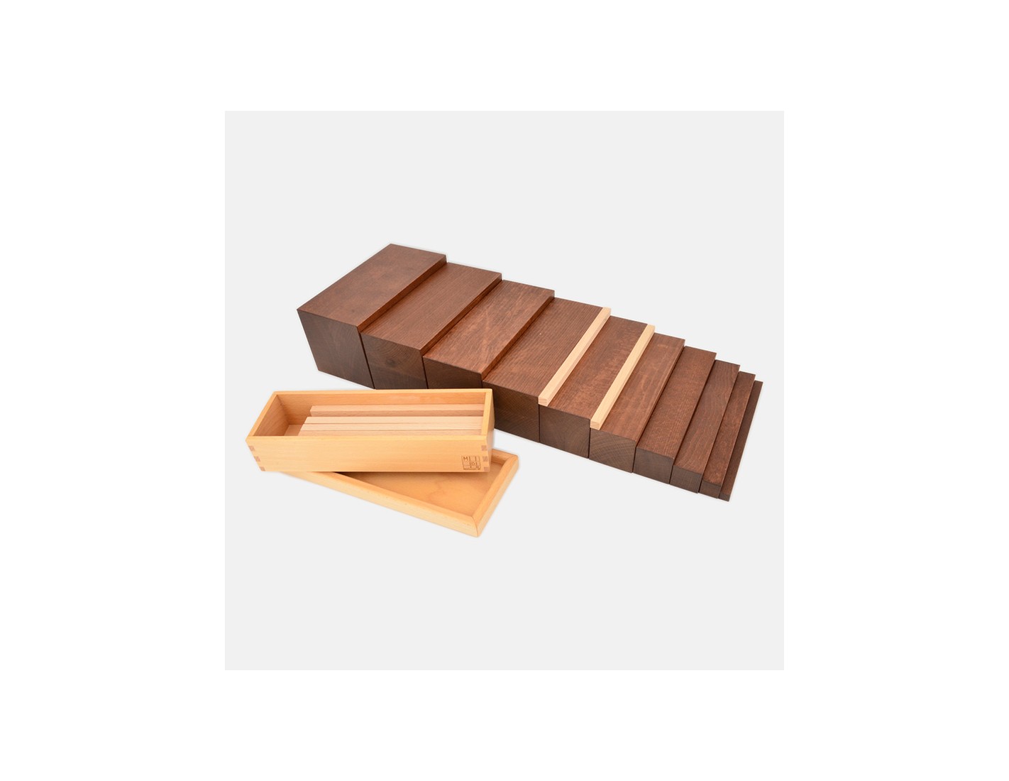 Il materiale è costituito da una serie di dieci prismi a sezione quadrata, in legno massiccio trattato con velatura in colore marrone; le dimensioni dei prismi aumentano, relativamente alla sezione, di un centimetro ciascuno, per cui il più sottile misura 1 cm di lato e il più spesso 10 cm, mentre la lunghezza rimane costante e pari a 20 cm.